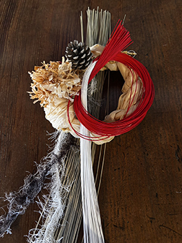 ひのき・麻・いぐさ・水引など、日本の伝統素材を組み合わせ、国産の材料でオリジナルのお正月飾りをつくります。
